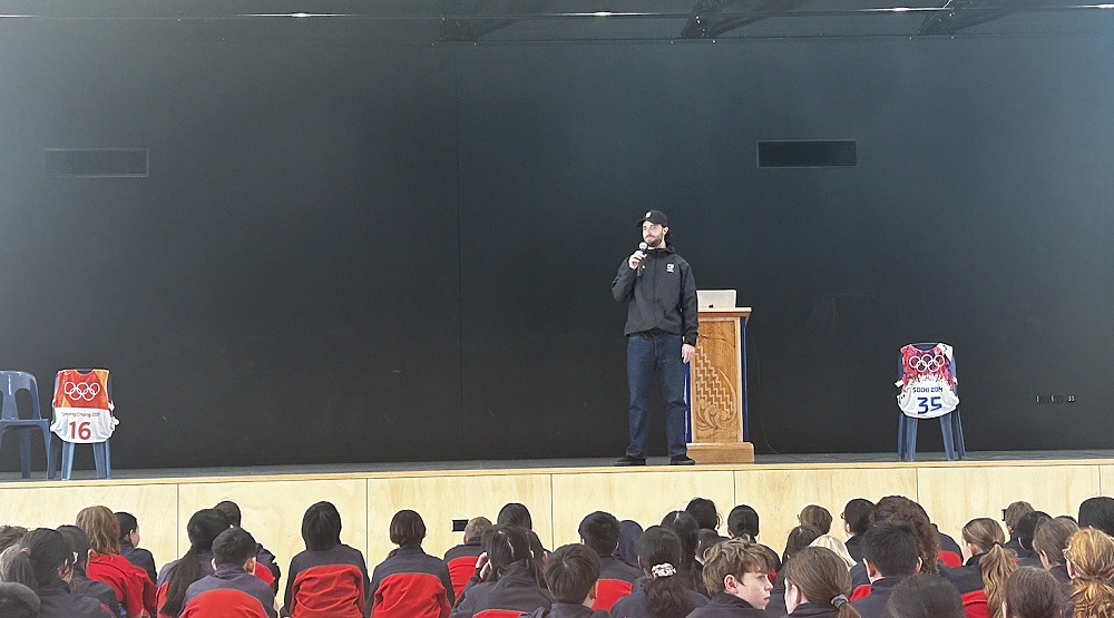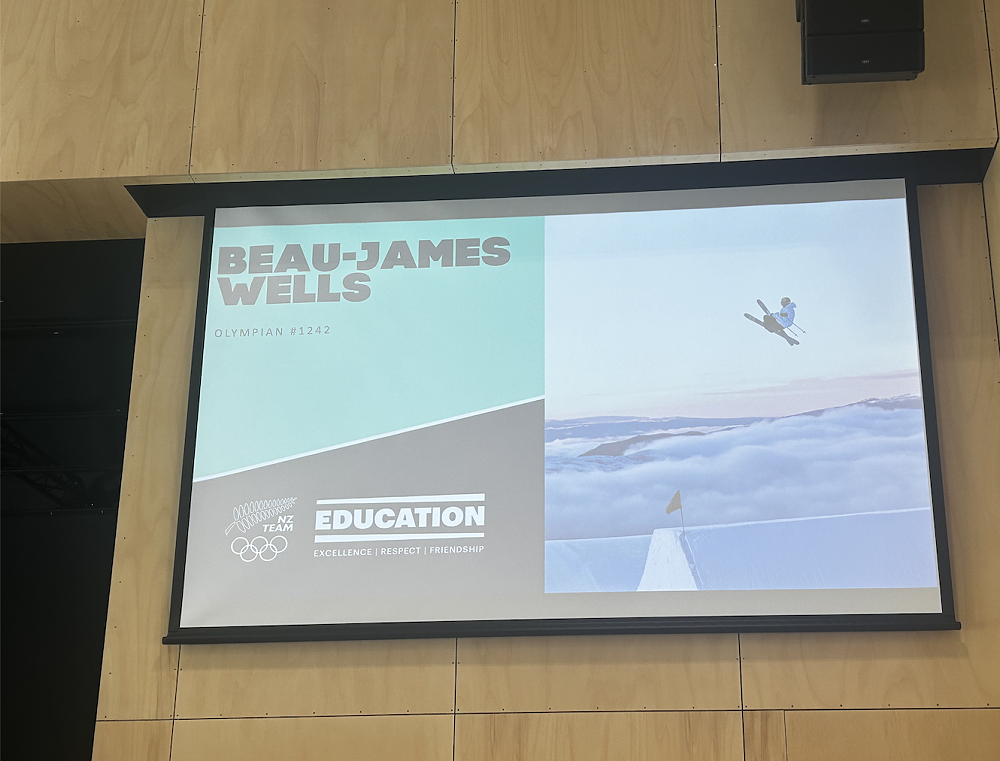 The whole school was then treated to a presentation by Beau-James Wells, of the infamous Wells family located in Wanaka, a winter Olympic athlete who has represented New Zealand at two Olympics. Beau-James shared stories of the challenges he and his 3 brothers faced when working towards an Olympic campaign. He talked about the Olympic values of Excellence, Respect and Friendship and the importance of selecting a good role model.