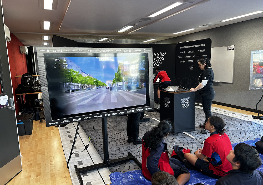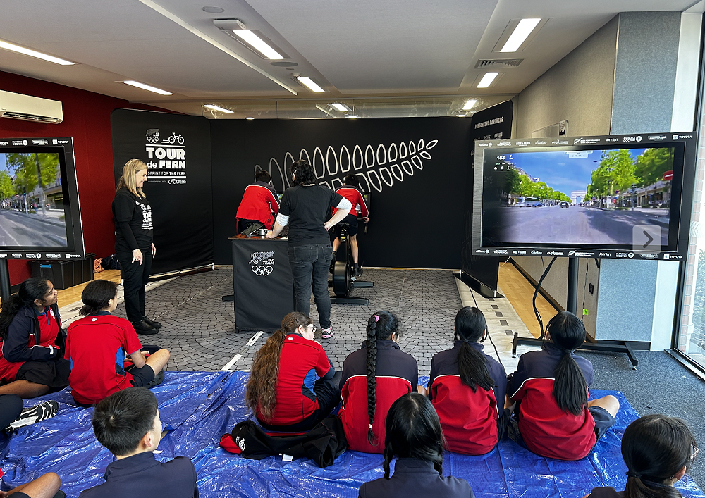 On Friday Wairarapa Cobham was the lucky school to be chosen to represent Christchurch in the Tour de Fern campaign. Year 8 students had a chance to jump on the bike and pedal as fast as they could through the streets of Paris. Adding to the collective distance being achieved by New Zealanders from across the country. This is part of the New Zealand Olympic Committee’s promotion for the upcoming Olympic Games next month.
